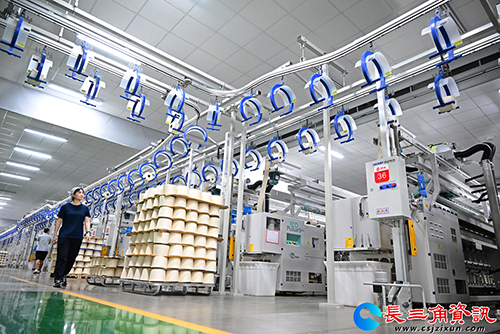 图为2025年3月25日,在山东省青岛市即墨区的一家智慧纺纱企业,新安装的自动化吊运传送设备在试运行。当地通过对接企业用工需求、实施新技能培训等举措,有效促进纺织服装产业可持续高质量发展,也让群众在家门口实现稳定就业和增收。新华社记者 李紫恒/摄