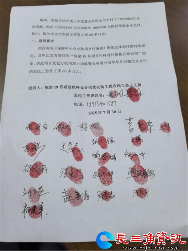 强烈要求浙江华元华昭府项目总包方尽快支付拖欠的60多万农民工工资