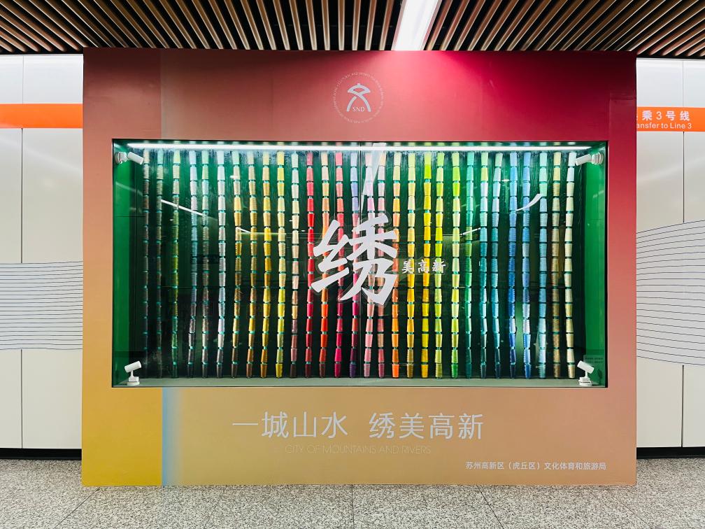 “绣美四时——非遗新年苏绣主题展”同日在苏州轨道交通5号线索山桥西站启幕。展览在地铁空间内展示苏绣作品,并融合水韵姑苏特色布置风格各异的艺术墙,将苏州的温婉与秀美惟妙惟肖地呈现出来。