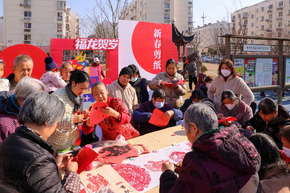 “历史悠久的剪纸艺术具有浓厚的民族特色,以其很强的装饰性、趣味性美化我们的生活,蕴含着丰富的文化历史信息……”无锡市非物质文化遗产项目代表性传承人冯钻荪介绍着剪纸文化并现场示范折纸剪刻的技巧。居民们围坐桌边,一边切磋交流,一边上手实践。在老师的指导和帮助下,一幅幅寄托美好寓意的剪纸作品让人拍手叫好。