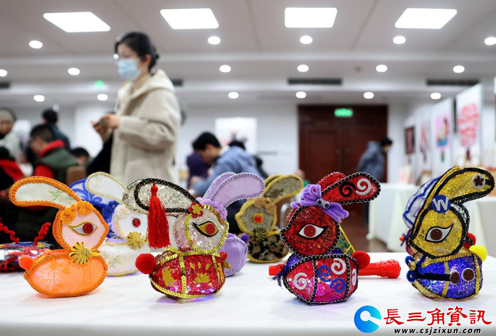 长三角资讯 3月6日在巾帼园的非遗好物市集上拍摄的手工兔子灯。