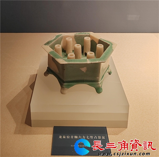 杭州德寿宫遗址出土的龙泉窑青釉六方七管占景盆。新华社记者冯源 摄