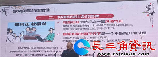 活动现场,南通大学马克思主义学院原副院长、南通廉政研究中心原常务副主任、南通华夏忠孝文化研究会副会长成云雷教授担任主讲人。成教授以"历史传承-案例解析-实践创新"三维度,为基层党员干部呈现了一堂浸润式家风党性教育课。