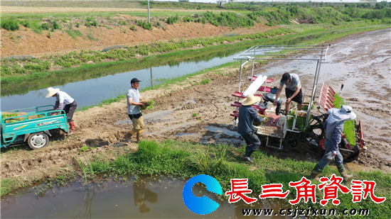 长三角资讯讯 5月30日,夏令时分,又是“三夏”插秧忙碌季节,位于句容市后白镇延福村的后白良种场的水田里,已然一片“水满田畴稻叶齐,日光穿树晓烟低”的景象,只见插秧机在田间穿梭起来,一排排秧苗错落有致地在水田里铺展开来,涌动着现代农业的蓬勃生机!