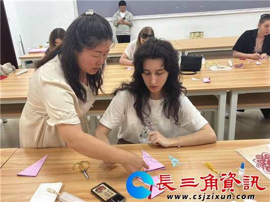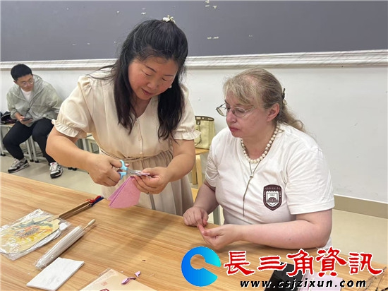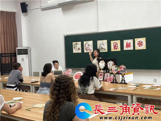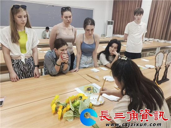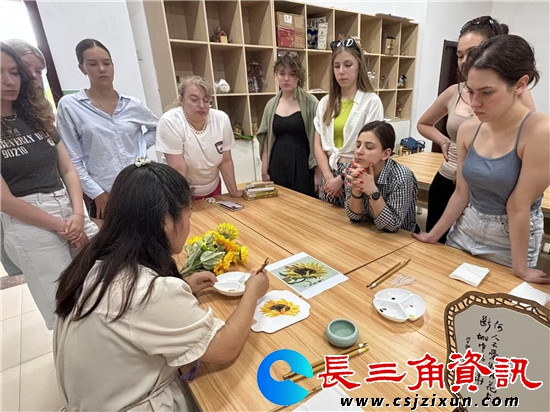 长三角资讯讯 2025年6月26日 江苏第二师范学院溧水校区内,来自俄罗斯众多留学生现场向非遗传承人原卫妮学国画团扇,剪纸伞。
