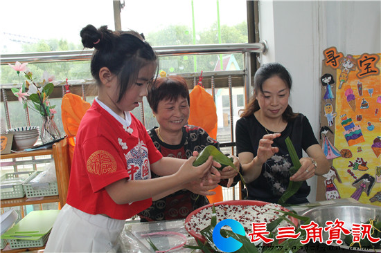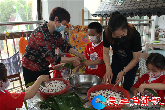 长三角资讯讯 “老师,你看我包的粽子好看吗,嗯,不错!这位小朋友听到老师夸自己的粽子包的好之后心里乐滋滋的。”