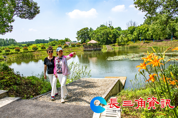 长三角资讯 2022年6月2日,游客在南京市溧水区东屏镇一处河塘观光游览。