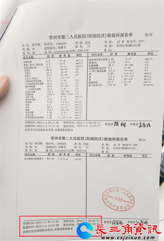 直到1月9日晚上,周女士才接到常州二院阳湖院区医生打来的电话,告诉说抽血检验是怀孕的。这让一个本来就需要特别关心和呵护的备孕做母亲的周女士心理顷刻崩溃,当时就无法控制大哭起来......