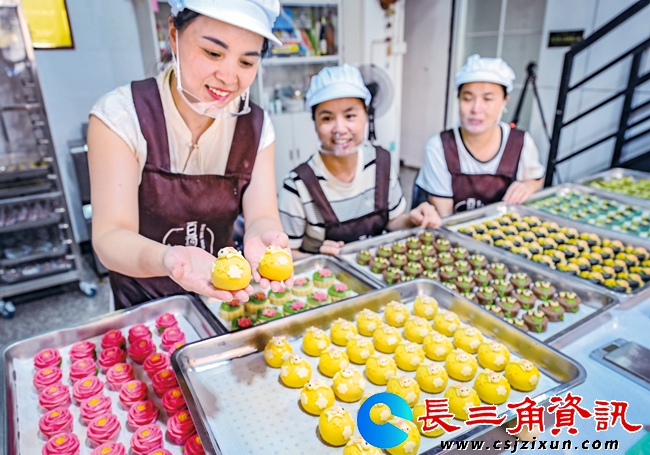 汪丽娟是金华市婺城区“清明粿”技艺非遗传承人,擅长制作美食的本领也运用到了制作月饼上。近三年,每年她都推出造型新颖的月饼,还不定期开展美食制作体验课,玩转传统美食。(吴潮宏)