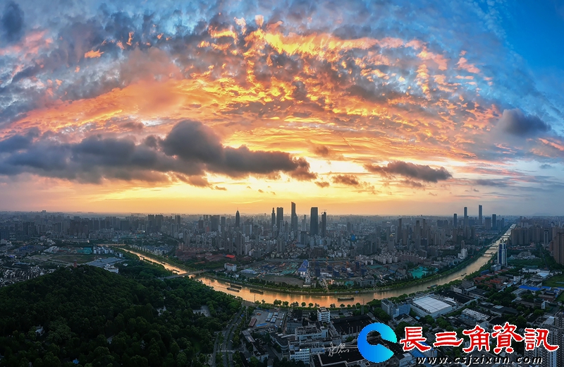 长三角资讯 临近处暑,早晚温度下降不少,带来丝丝秋意。空气清新,能见度很高,朝阳的光辉仿佛为大运河镀上了一层耀眼金箔,充满生机。