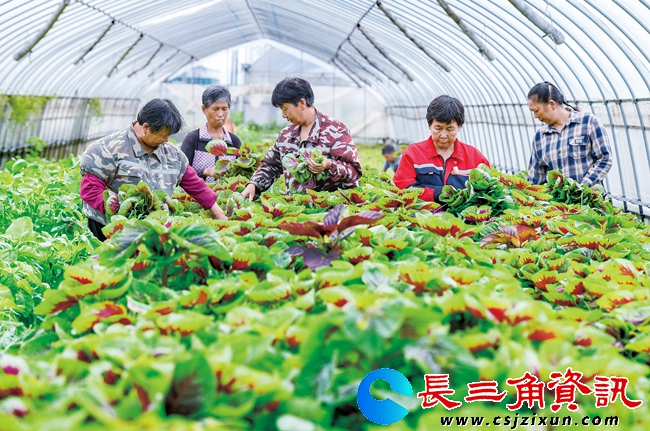 长三角资讯 8月28日,金华市婺城区琅琊镇某农业有限公司蔬菜大棚里,村民忙着采收当季新鲜蔬菜供应市场,丰富百姓的菜篮子。