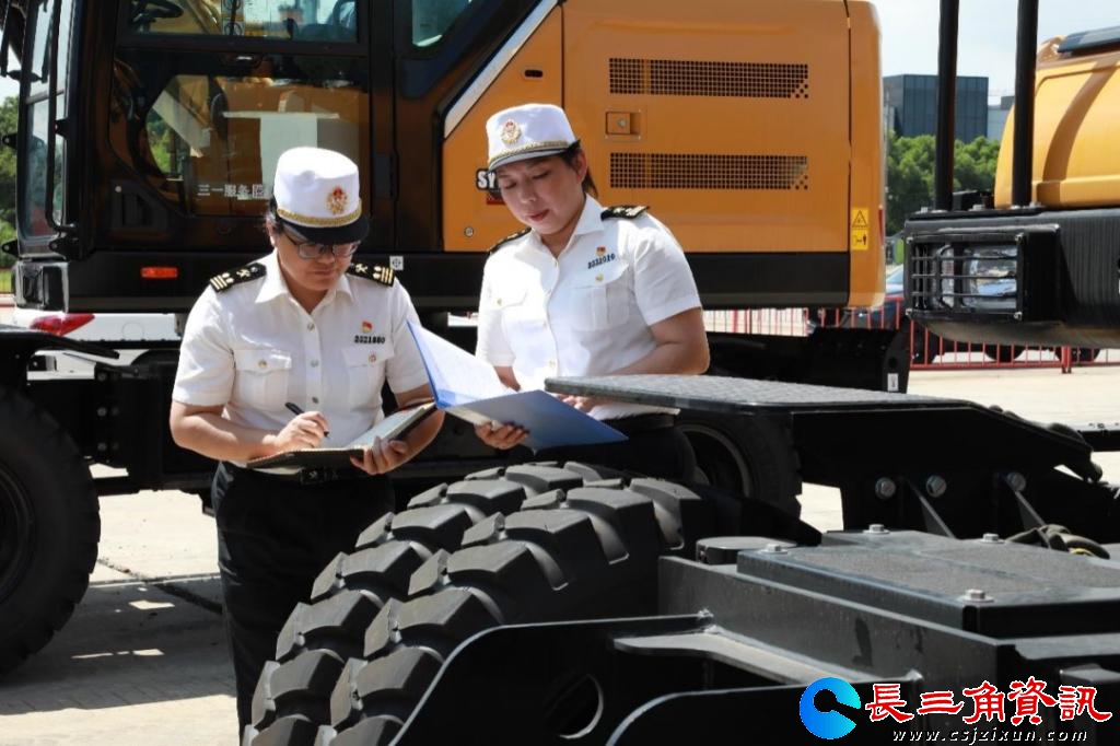 海关人员监管即将出口到非洲的工程机械。新华社记者刘巍巍 摄