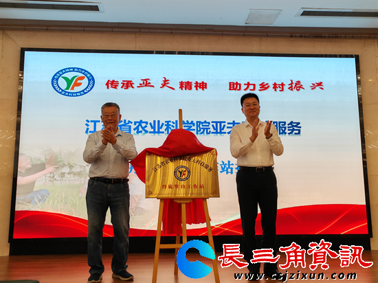 接着,由全国脱贫攻坚楷模赵亚夫、镇江市丹徒区委书记毛健共同为“亚夫科技服务丹徒区墅山工作站”揭牌。