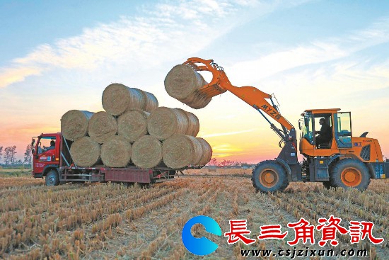 长三角资讯 11月7日,位于宿松县的安徽农垦华阳河农场,农机手对农作物秸秆进行打捆、装车运输等作业。近年来,该农场围绕秸秆能源化、肥料化、饲料化等进行秸秆综合利用,助力农业绿色循环发展。(李龙 文/图)