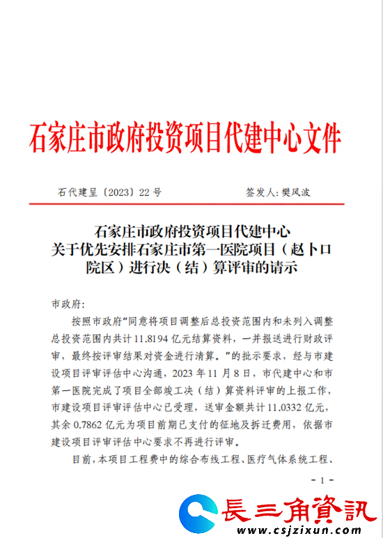自2020年4月份以来,一晃就是几年。很快春节即临,快要6年时间了!一次次欺骗,一次次忽悠,让农民工们迫于无奈,于是农民工向国家信访局、河北省信访局、石家庄市信访局等有关部门开始反映农民工工资没有解决情况。时间一晃就来到了2023年12月,石家庄市政府投资项目代建中心发文,向石家庄市政府“关于优先安排石家庄市第一医院项目(赵卜口院区)进行决(结)算评审的请示”,恳请市政府协调市建设项目评审评估中心尽快优先安排该项目结算评审工作,尽快完成评审,以便财政拨付工程尾款,从根本上解决该项目存在的欠薪隐患和舆情风险问题。得到的批复中明确要求:所有欠薪问题快办快结,实现“两清零”目标。