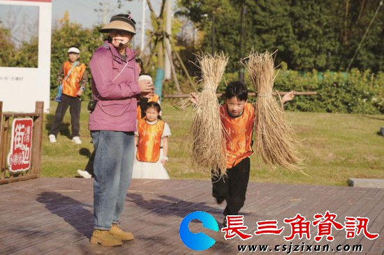 长三角资讯 12月1日下午,“秀洲‘三馆’秀水寻踪·小小系列文旅融合活动”在嘉兴市王江泾镇古塘村热闹展开。小朋友们在老师的带领下,兴致勃勃地割稻子、堆稻垛,体验农耕的乐趣。(陆巍)