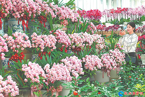 长三角资讯 2024年12月30日,在位于肥西县的中国中部花木城,花卉商家在拍摄年花样品。肥西县是全国著名的花木之乡,全县花木种植面积达28.7万亩,从业人员10万余人。记者 张大岗 摄