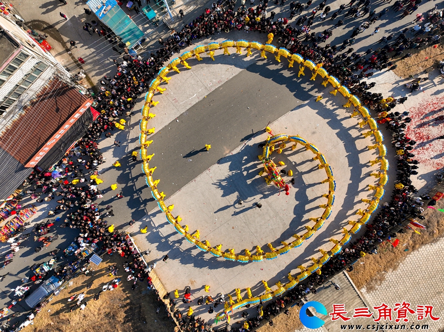长三角资讯 1月19日,随着阵阵锣鼓声,一条百米长的金色板龙“游”进江苏省南京市高淳区阳江镇正觉寺自然村戏台广场,为即将到来的蛇年春节增添了浓浓的年味儿。据了解,该民间龙舞也称为阳江板龙,十年左右举行一次,是一种起于宋、盛于清的民间舞蹈,金色的板龙有68节,长达122米,需要100多人才能舞动起来。经过漫长的历史发展,其规模、特色、技巧日趋完善,为当地村民世代相传。(江楠)