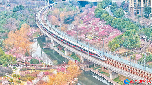 长三角资讯 2月22日,合肥市蜀山区匡河公园、绿轴公园,梅花绽放、姹紫嫣红,游客在公园内散步休闲、打卡拍照,享受惬意好春光。图为匡河公园一隅春景。通讯员 陈三虎 摄