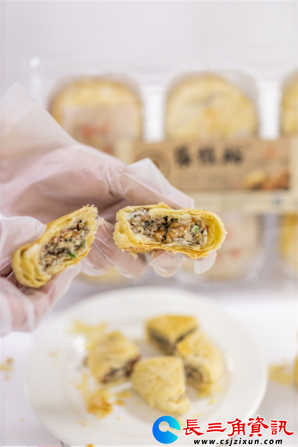 长泾茶食在明清江阴县志中屡有记载,月饼等传统苏式糕点以馅料丰富、口味上乘著称。“张慎裕”月饼作为代表,坚守手工制作传统,似执着工匠雕琢艺术品。其外观金黄油润、圆边浅黄、皮层酥松、色泽诱人;馅料用核桃仁、瓜子仁等精心配制,肥而不腻。制饼师傅“油糖面,随手变,三分做,七分烤”的秘诀,蕴含着几代人的智慧传承。经不断改良,饼皮层层起酥、薄如蝉翼,包裹丰富馅料,每一口都甜而不腻、口齿留香,那是地道老味道,是岁月沉淀的醇香,能让人穿越时空,回到温情旧时光。