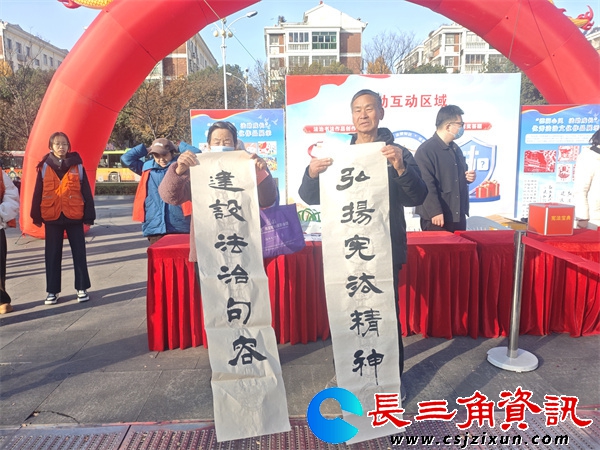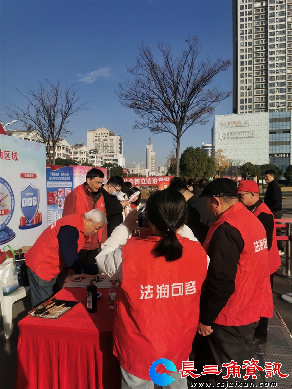 长三角资讯 今天是12月4日也是第十二个国家宪法日。以“学习宣传贯彻习近平法治思想,推动宪法深入人心”为主题,句容市司法行政社会组织今日在“福地广场”用书法挥毫泼墨进一步弘扬宪法精神,增强全民法治观念。