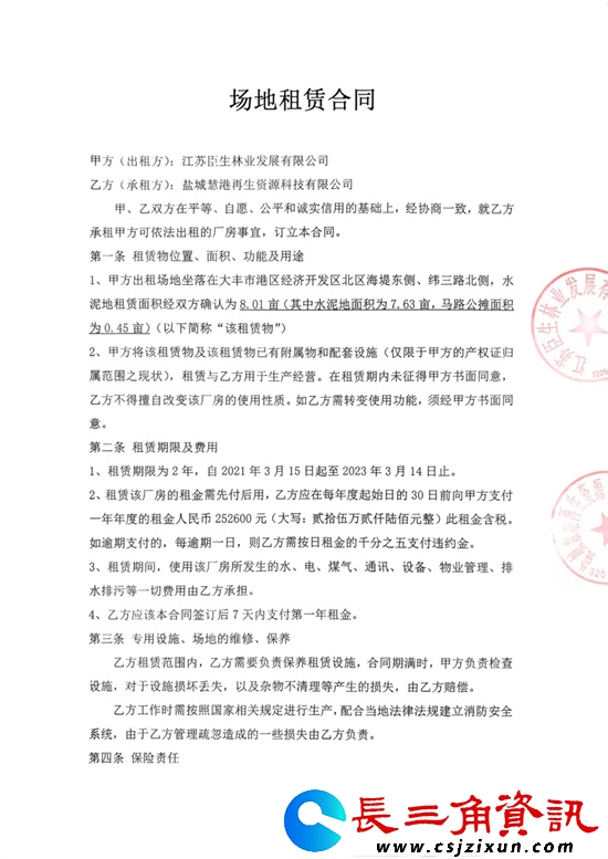 1.2020年9月,租用了大丰港再生资源产业园中江苏汇鸿国际集团大丰物流有限公司院内的水泥硬化空地,机器设备和员工陆续到位,于2020年10月中旬开始经营。