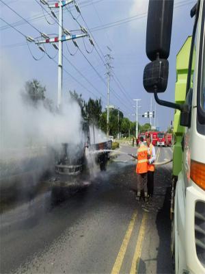 句容城管:路遇货车起火 环卫工变身“消防员”