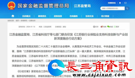 记者从江苏金融监管局获悉,近日,江苏金融监管局、江苏省科学技术厅、江苏省发展和改革委员会、江苏省工业和信息化厅、中共江苏省委金融委员会办公室、江苏省财政厅、江苏省知识产权局联合制定了《江苏银行业保险业支持科技创新与产业创新深度融合行动方案》(简称《行动方案》)。