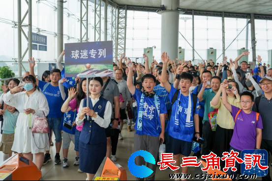 6月14日淮安队主场迎战南京队,南京市长陈之常带着载有700余名球迷的G9253次列车,从南京开往淮安的“苏超”球迷专列到场观战。