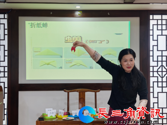 “小麦丰收赛”中,孩子们分成两组,模拟小麦丰收的场景,通过团队合作完成“收割”任务,不仅锻炼了动手能力,还深刻体会到农事活动的艰辛与乐趣。而“折纸蝉”活动则激发了孩子们的创造力和想象力,一张张彩纸在孩子们手中变成了一只只栩栩如生的蝉,仿佛在诉说着夏日的生机与活力。“节气蹲蹲乐”游戏则让孩子们在欢声笑语中进一步熟悉了夏天的六个节气,每个孩子都积极投入,现场气氛热烈非凡。