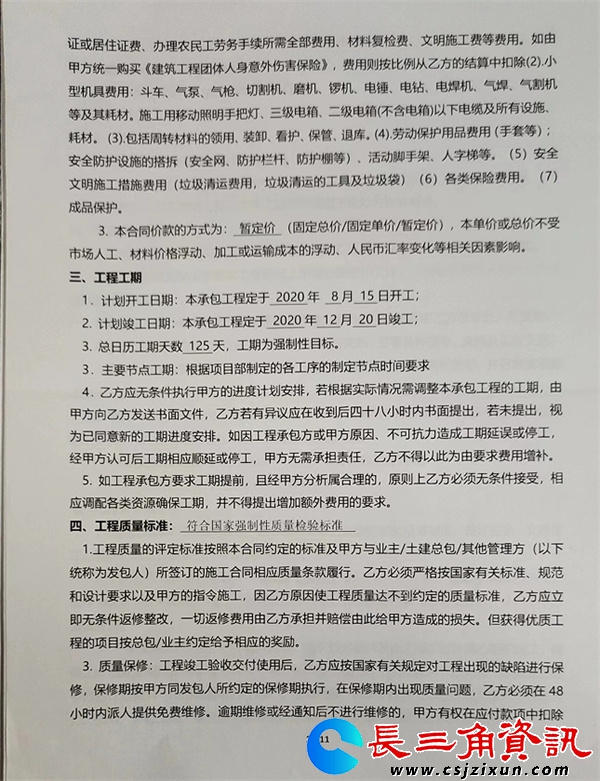 根据该承包合同,工程项目定于2020年8月15日动工,12月20日竣工,工期125天,原先工程估价60多万元。双方确定了施工价格和进度、质量标准、责任义务等施工的细节,特别明确了结算办法及付款方式:双方约定,签订劳务承包合同后,在零预付款的前提下,此后乙方每月25日按施工进度申请施工款,以现场实测上墙收方工程量进行支付,甲方在收到乙方申请单 30个工作日内,核实现场工程量并审定价格,经甲方财务部门批准后,向乙方累计拨付至完成量的70%,项目完工后总付款额不得超过80%。竣工验收合格结算后,支付至结算价的95%价款。剩余 5 %为保修款,接到维修通知后,24 小时内必须有维修人员到场维修。保修期两年内若无质量问题,业主方无投诉、无扣款,第一年退还0%,剩余保修金期满两年后全额退还。乙方实际施工工程量或增加签证超过本协议预估工程量 10%以上的,双方应另行签订增补合同,涉及的价格、结算方式等参照本协议执行,签证中间过程不付款。