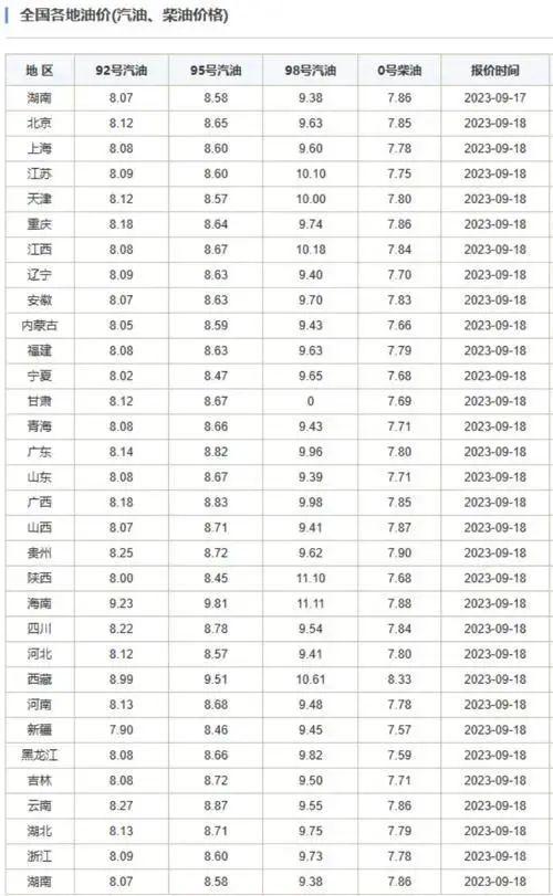回顾近期的油价情况来看,在前期迎接了“五连涨”后,目前国内92#汽油已普遍超出8元/升,95#汽油则在8.45-8.87元/升(除海南、西藏)之间。如按当前幅度调整,广东、广西、四川、云南等地的95#汽油价格或将突破9元/升。