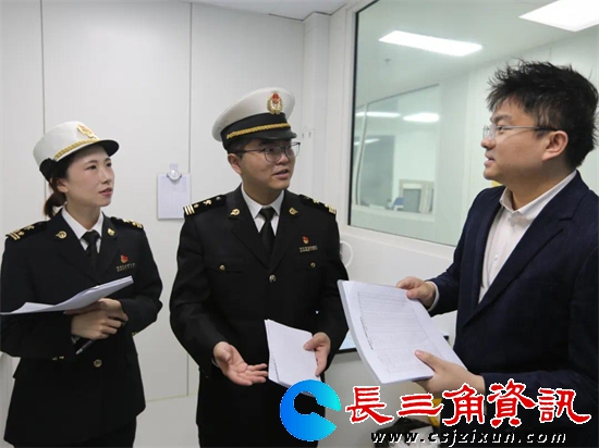 图为:苏州海关关员在企业调研生产情况。王梓懿/摄