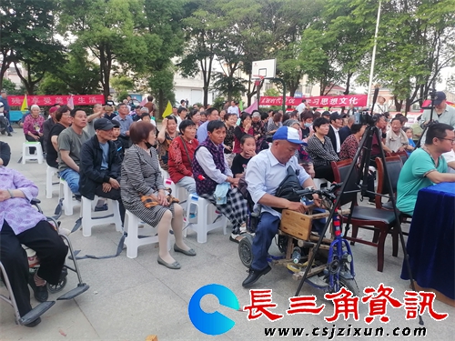 在现场的横幅上写着:“共筑有爱之桥,共享美好生活,第三十四次全国助残日暨丹徒区阳光残疾人艺术团建团10周年晚会”,现场坐满了荣炳蒲圩村,胜利村,曙光村,包括附近宝堰镇,丹阳市的村民,句容市的村民。在演出现场,下肢残疾,坐在轮椅上的这支残疾人团队的领队人田小锁告诉记者,今天上台演出的是一群有各种残疾的残疾人自创自导自演的各类文艺节目,30多名残疾人的文艺节目精彩纷呈,梦幻般的艺术效果赢得了在场观众一阵又一阵雷鸣般的掌声。