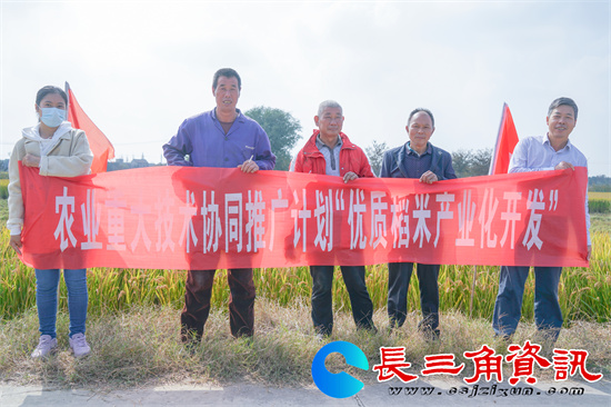 这一切都得益于以张洪程院士为首的技术团队,联合地方高校、多地农科教推等机构,项目以“产学研”的形式展开;在省政府农业、财政部门大力支持下,围绕优质(糯)水稻产业化开发主题,协同科研院校、栽培、植保、种业、推广、加工企业、流通等方面力量,开展专用科研成果推介、品种示范推广、绿色高效栽培技术、药剂拌种简约防控、种业加工销售、专用糯稻谷订单收贮,以及企业加工专用等方面工作;同时联系加工企业、种业公司、省市级、县区、乡镇农技推广部门、示范基地和部分经营主体,共同组建协同推广联盟,促进形成的科研、技术成果集成推广。科研单位推广研究的新成果、新品种,农业服务团队提供的技术支撑,在新型经营主体规模化种植基础上,依托企业订单托底收购,实现水稻产业做大做强,科、推、种、产多方协同促进,实现了金坛地方水稻种植产业健康发展。
