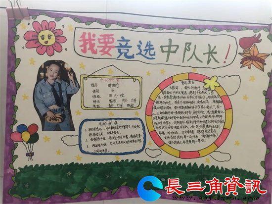 长三角资讯 “我们是新世纪的少年,要在童年的乐章里奏出最美的音符;我们是展翅的雏鹰,要在青春的长河里抒写出最多的篇章。”党的二十大即将召开,在这美好的季节里,河滨路小学各中队举行了中队委竞选活动。 在发布了中队委竞选消息后,队员们踊跃报名参加,纷纷填写申请表,绘制竞选海报,快来看看他们的竞选作品,真是丰富多彩。这不仅凸显了新一代河滨路小学少先队员们朝气蓬勃、锐意进取的阳光风貌,还充分表达了他们对少先队工作的热爱以及为中队、为队员服务的坚决决心。此次活动充分展现了河滨路小学少先队员的风采,也激发了队员们的责任与担当,相信各中队的新一届中队委员定能发扬少先队员“诚实、勇敢、团结、活泼”的光荣传统,带领中队少先队员创造新辉煌。(图文/句容市河滨路小学)