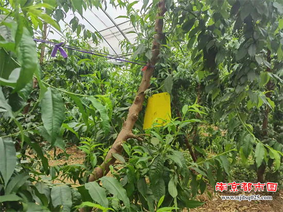 生产一颗好桃,需要有科技的支撑,溧阳市尚欣生态农业有限公司作为江苏(溧阳)现代农业(桃)科技综合示范基地,从2017年起就与江苏省农科院开展技术合作,在江苏现代农业桃产业技术体系专家团队的指导下,不断引进桃新品种、新技术、新模式,在省农科院专家指导下,尚欣桃园采用桃避雨设施栽培,应用病虫害绿色防控、果园全程机械化、高光效树形整形、果园生草栽培技术和水肥一体化技术。