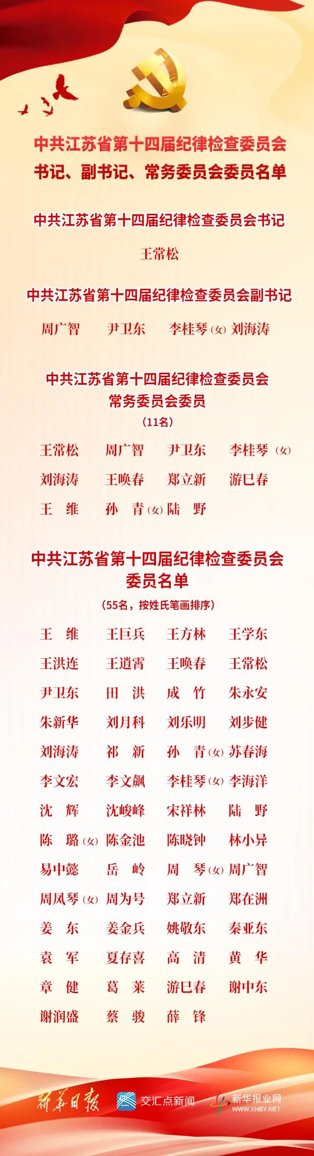 中国共产党江苏省第十四届纪律检查委员会书记、副书记、常委、委员名单