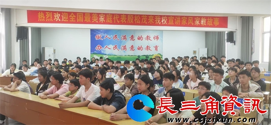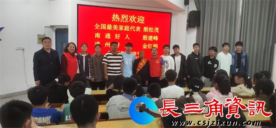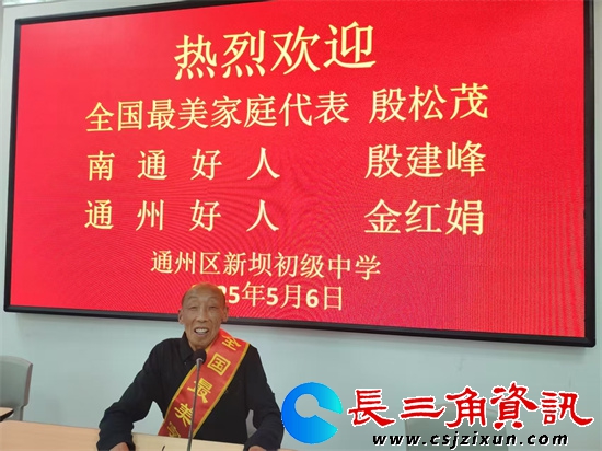 长三角资讯 在5月15日国际家庭日来临之际,5月6日下午,南通市通州区新坝初级中学邀请辖区全国最美家庭代表殷松茂、南通好人殷建峰、通州好人金红娟走进校园,开展了一场别开生面的家风宣讲活动,400多名师生共同聆听最美故事,感受优良家风。