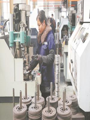 日前,在淮北市濉溪经济开发区一家机车制动部件生产企业,工人在车间生产机车刹车盘。近年来,濉溪经开区大力发展汽摩配产业,通过专注细分领域,走专精特新之路,用小部件敲开大市场。通讯员 万善朝 摄