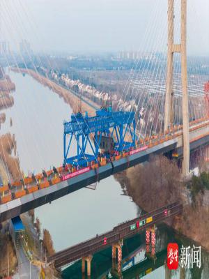 北沿江高铁南京特大桥跨滁河斜拉桥顺利合龙