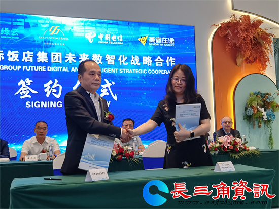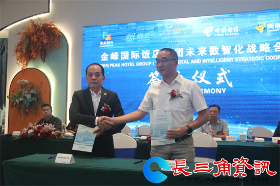 长三角资讯 9月21日上午,位于溧阳市城区的金峰国际饭店三楼金峰厅,高朋满座,大咖云集。金峰国际饭店集团未来数智化战略合作签约仪式正在此举行。杭州绿云科技有限公司、杭州美宿在途网络科技有限公司、苏州未来前台人工智能科技有限公司、中国电信股份有限公司溧阳分公司负责人,溧阳市文体广电和旅游局、溧阳市市场监督管理局领导嘉宾,酒店集团董事长、总经理等高管,以及酒店员工代表近百人出席签约活动。