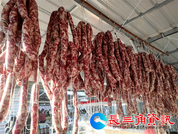 长三角资讯 镇江宝堰有一对小夫妻每天为村民灌香肠1000斤,销售20多头猪肉,卖咸腊肉500多斤,他们忙翻了!