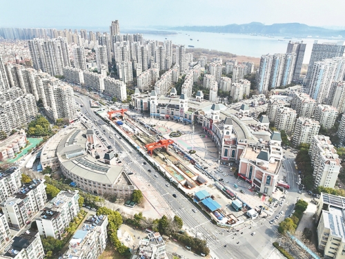 南京地铁11号线桥北明滨路站主体结构目前已经封顶,明滨路站—柳洲东路站区间右线盾构正按计划掘进中。 本报记者 范俊彦 摄