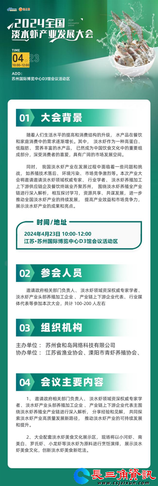 4月23日,2024全国淡水虾产业发展大会在苏州国际博览中心诚挚邀您参加!