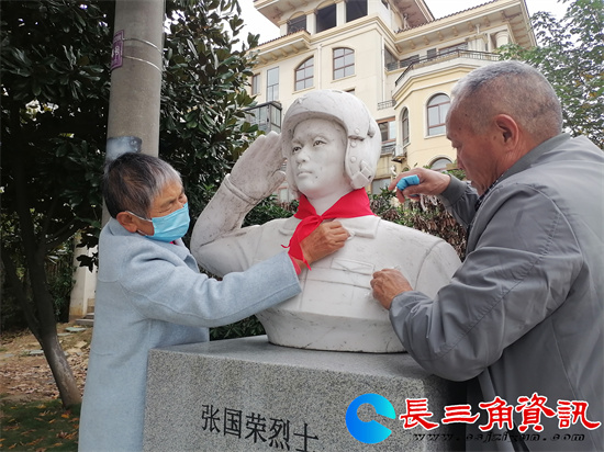 长三角资讯讯 今年11月13日是国家一级飞行员,一等功臣张国荣牺牲十周年的纪念日。这天上午,为了纪念镇江丹徒区宝堰镇的这位蓝天英雄,丹徒区退役军人事务局,丹徒区宝堰镇党委、政府及张国荣所在的前隍村党委、村委会的主要负责人与张国荣烈士的亲属在宝堰烈士陵园举行了简朴而庄严的祭奠活动。人们先后来到丹徒新城盛丹路上《国荣桥》旁张国荣烈士的塑像和宝堰烈士陵园张国荣烈士纪念碑前献上了鲜花,并向张国荣烈士的遗像和卧碑三鞠躬。