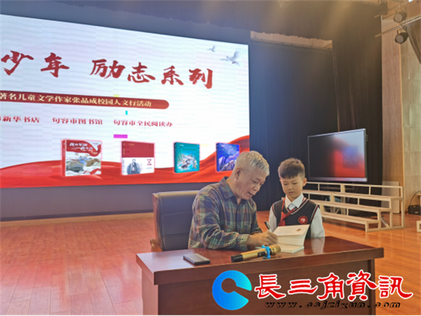 长三角资讯 为进一步推动书香校园建设,营造浓厚的读书氛围,近日,句容市全民阅读办、句容市图书馆和句容市新华书店联合举办的“作家校园人文行”活动,诚邀著名儿童文学作家张品成来到句容,为句容华阳实验小学、行香中心小学、边城中心小学等六所学校的同学们带来了“红色少年 励志系列”主题公益讲座。