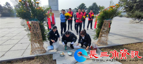 解放锦州烈士陵园,于1998年10月15日建成。陵园背靠帽儿山,坐北朝南,占地面积17万平方米,由陵园大门、浮雕墙、纪念广场、纪念碑、单体烈士墓、无名烈士合葬墓和碑林等组成。12日上午8时许,帽儿山解放锦州烈士陵园庄严肃穆,虽是晚秋时节,四面青山依旧巍峨青翠。沿陵园大门向上走,越来越高。在解放锦州烈士陵园纪念碑前,辽沈战役纪念馆副馆长龚兵与工作人员接待了我们,锦州电视台也派来了两名记者参与现场报道。副馆长龚兵指着不远处帽儿山说,当年锦州战役的我军指挥部就在山顶,在山顶可看到当年锦州城的全貌。在我们这个解放锦州烈士陵园里,一共安葬将近12000位烈士,其中11750位无名烈士,有一个大的合葬墓,我们的毕化之烈士,应该就是在这个无名烈士墓里边安葬的。上午9时许,祭扫英烈活动正式开始,我与烈士的外甥陈坤、泗阳县退役军人事务局陈京军科长、泗阳县橄榄情拥军协会李大军与张富、扬宁等手拉着“毕化之烈士 泗阳亲人看您来了”的横幅,缓步行至无名烈士合葬墓前,分别为长眠于此的革命烈士献上鲜花,全体人员向革命烈士默哀三分钟,毕化之烈士的外甥陈坤向无名烈士合葬墓四周撒家乡土,用家乡洋河酒祭奠长眠于此的革命烈士,全体人员向革命烈士行三鞠躬礼,并瞻仰烈士墓。最后,陈坤在合葬墓前,取一抔泥土带回家乡。