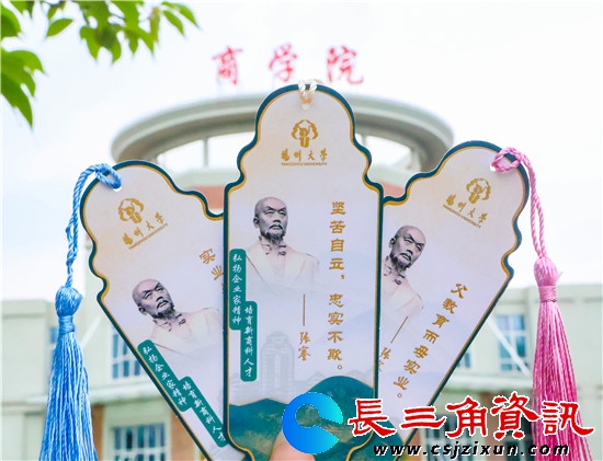 “我们在设计扬州大学商学院2024级新生纪念礼物时,以传承‘企业家精神’为主题,巧妙地融入了张謇企业家精神元素。书签外形灵感来自校徽、书卷、山河,搭配国潮元素,以校园标志性建筑为设计点缀,配色与2024年录取通知书相呼应。”扬州大学商学院设计团队成员陈琰在谈及设计理念时同记者分享道。