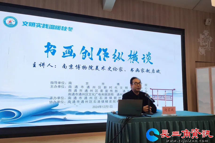 12月1日,南京博物院著名美术史论家、书画家赵启斌在风景秀丽的渔湾水乡风景区开展了一场书画讲座。